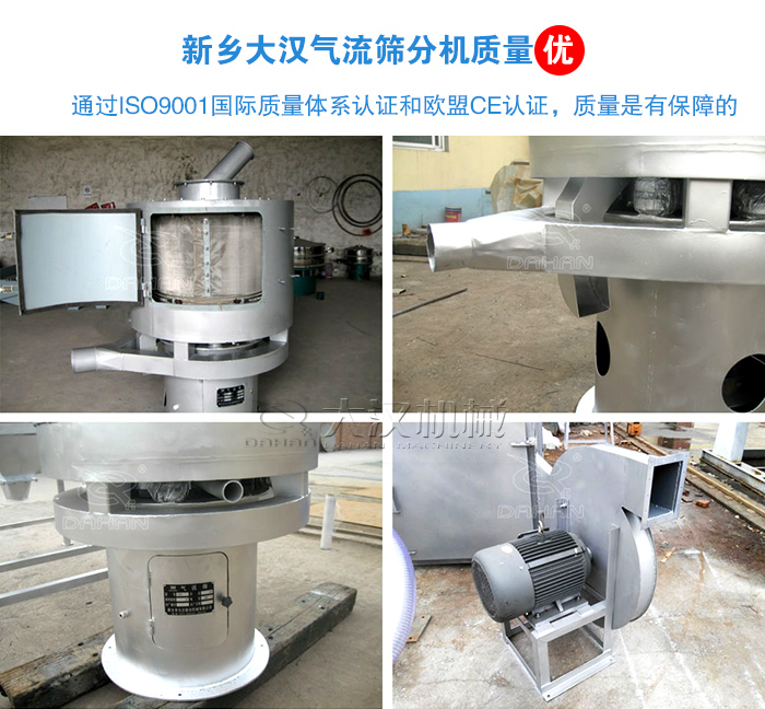 大漢氣流篩分機(jī)通過(guò)ISO9001國(guó)際質(zhì)量體系認(rèn)證和歐盟CE認(rèn)證,質(zhì)量是有保障的,大漢機(jī)械值得您信賴。
