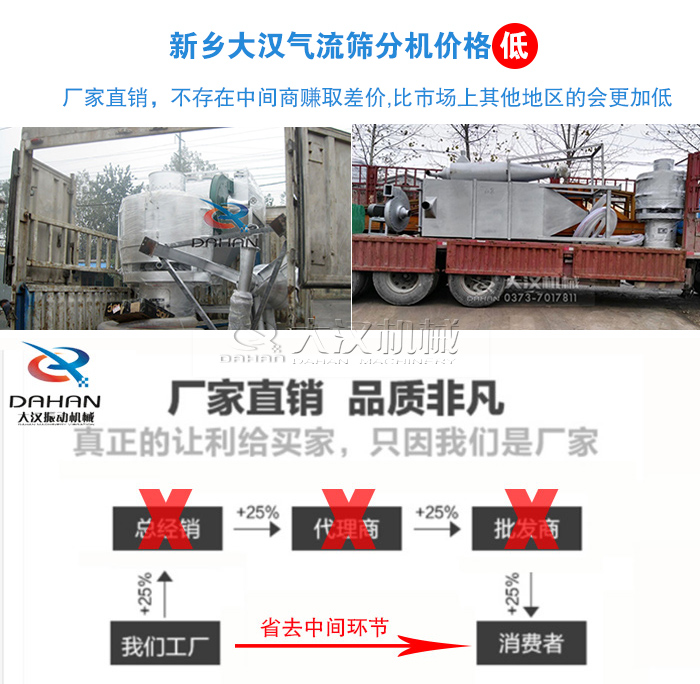 新鄉(xiāng)大漢氣流篩分機(jī)廠家直銷(xiāo),不存在中間商賺取差價(jià),所以在大漢購(gòu)買(mǎi)氣流篩分機(jī)相比市場(chǎng)上其他地區(qū)的會(huì)更加低。