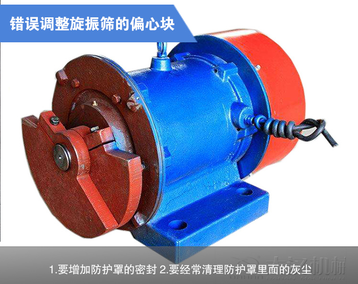 調(diào)整圓振動篩偏心塊時,誤把兩端偏心塊的方向調(diào)反,使振動電機產(chǎn)生一個空間扭矩,使振動電機在非正常狀態(tài)下工作,進而引起燒毀。因此調(diào)整偏心塊時,一定要注意其對稱性,即兩端偏心塊要兩兩對應(yīng),或者說是兩端偏心塊的重心連接線要與轉(zhuǎn)軸平行,不能成異面狀態(tài)。由于振動電機的工作環(huán)境大都非常惡劣、粉塵大,如果防護罩密封不嚴,很容易進灰塵,引起偏心塊的摩擦運轉(zhuǎn),從而燒毀電機。所以在工作環(huán)境惡劣的地方,