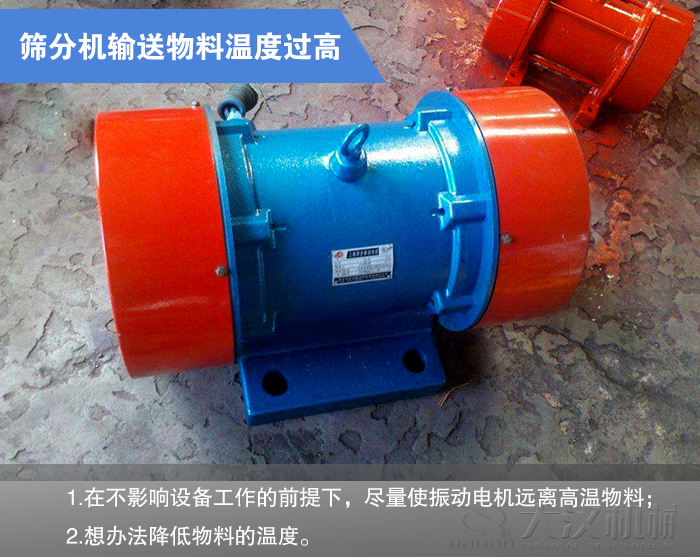 預防措施:1.在不影響設(shè)備工作的前提下,盡量使振動電機遠離高溫物料;2.想辦法降低物料的溫度。