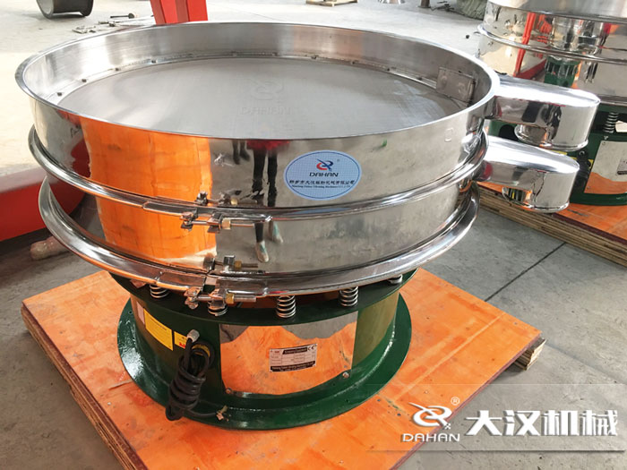 DH-1000-1S型振動(dòng)篩分機(jī)為1500mm直徑單層兩出口不銹鋼三次元振動(dòng)篩,子母網(wǎng)分離式網(wǎng)架,與物料接觸半部為304不銹鋼材質(zhì),底座為碳鋼材質(zhì)。
