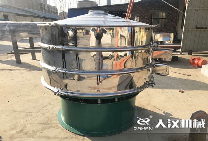 DH-1500-2S型振動篩分機(jī)為1500mm直徑單層兩出口不銹鋼三次元振動篩,子母網(wǎng)分離式網(wǎng)架,與物料接觸半部為304不銹鋼材質(zhì),底座為碳鋼材質(zhì)。