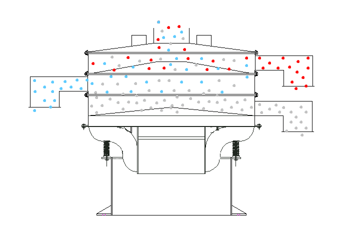 五層振動(dòng)篩的工作原理基于振動(dòng)分散+多層篩選的協(xié)同模式。當(dāng)物料從頂部進(jìn)料口進(jìn)入篩箱后,振動(dòng)電機(jī)啟動(dòng)產(chǎn)生高頻振動(dòng),帶動(dòng)五層篩網(wǎng)同步做三維運(yùn)動(dòng)。物料在振動(dòng)作用下沿篩面均勻擴(kuò)散,依次經(jīng)過(guò)五層篩網(wǎng)的逐級(jí)篩選:粒徑最大的粗顆粒被最上層篩網(wǎng)攔截,從對(duì)應(yīng)粗料出料口排出;符合該層級(jí)篩網(wǎng)孔徑的物料則透過(guò)篩網(wǎng),進(jìn)入下一層級(jí)繼續(xù)篩選;依此類推,經(jīng)過(guò)五層篩網(wǎng)的精準(zhǔn)分離,最終從底部出料口排出最細(xì)級(jí)別的物料。